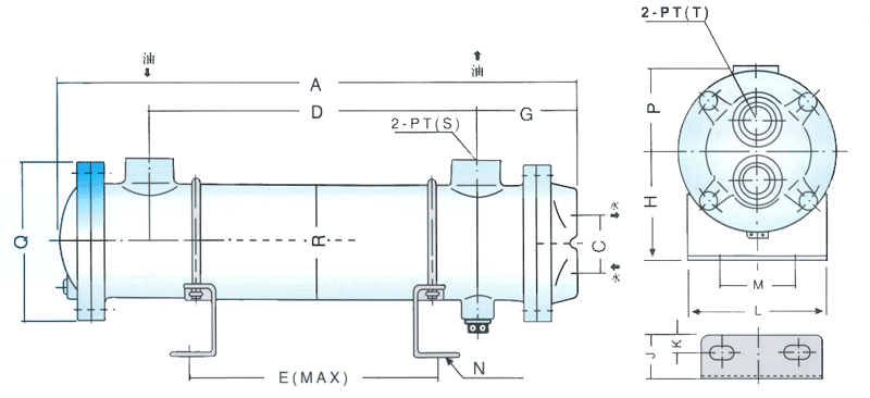 形式編號(hào) A C D E G H J K L M N P Q R S T 最大流量L/min 散熱面積m2