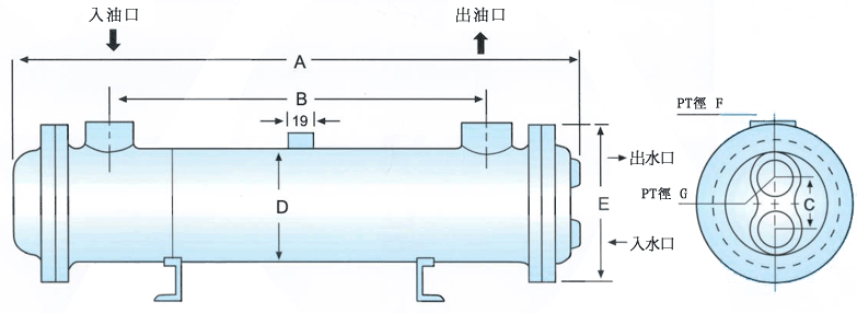 形式編號(hào) A B C D E F G 散熱管 散熱面積 油箱容量 重量 泵浦流量 水流量